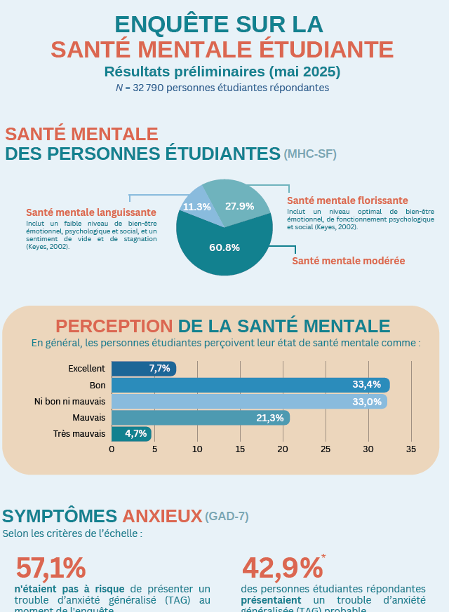 Ces outils portent l’objectif transversal de soutenir la culture d’amélioration continue des établissements dans l’optique d’assurer l’ajustement et la pertinence des pratiques mises en place en matière de santé mentale étudiante.