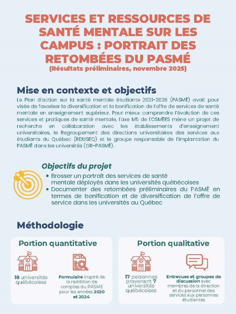 - De proposer une méthode pour évaluer les retombées de formations visant le développement de compétences en matière de santé mentale chez les personnes étudiantes.